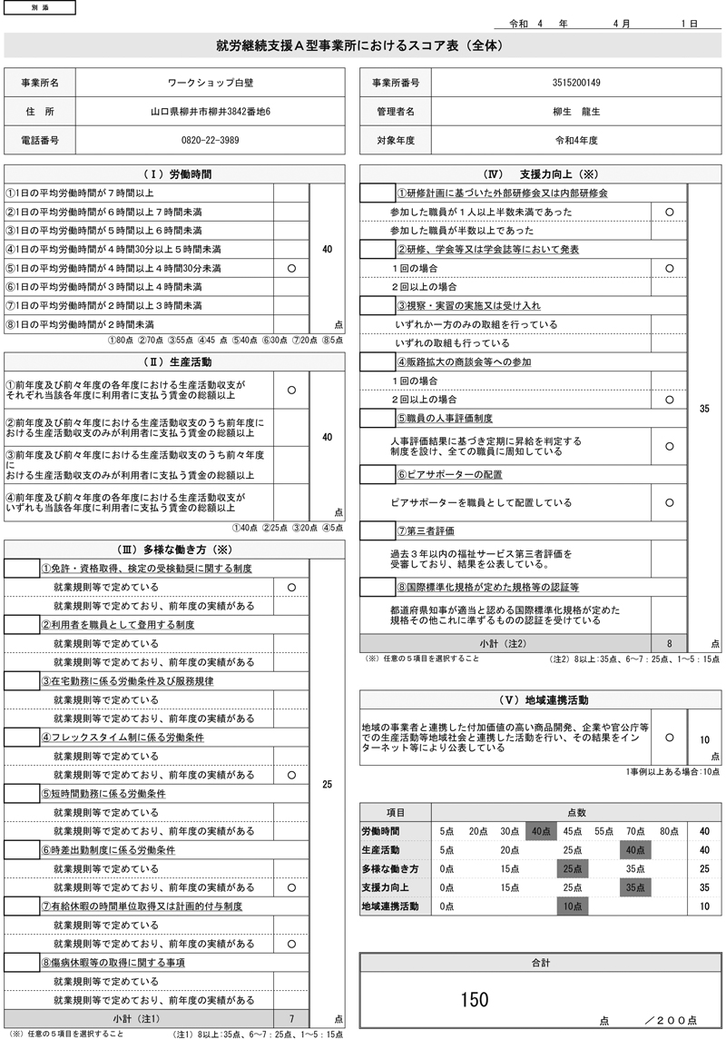 | 就労継続支援A型事業所におけるスコア表 ( 445 KB / 2022/04/08 10:22 ) |