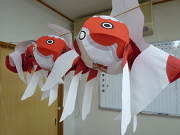 金魚ちょうちんを作っています。